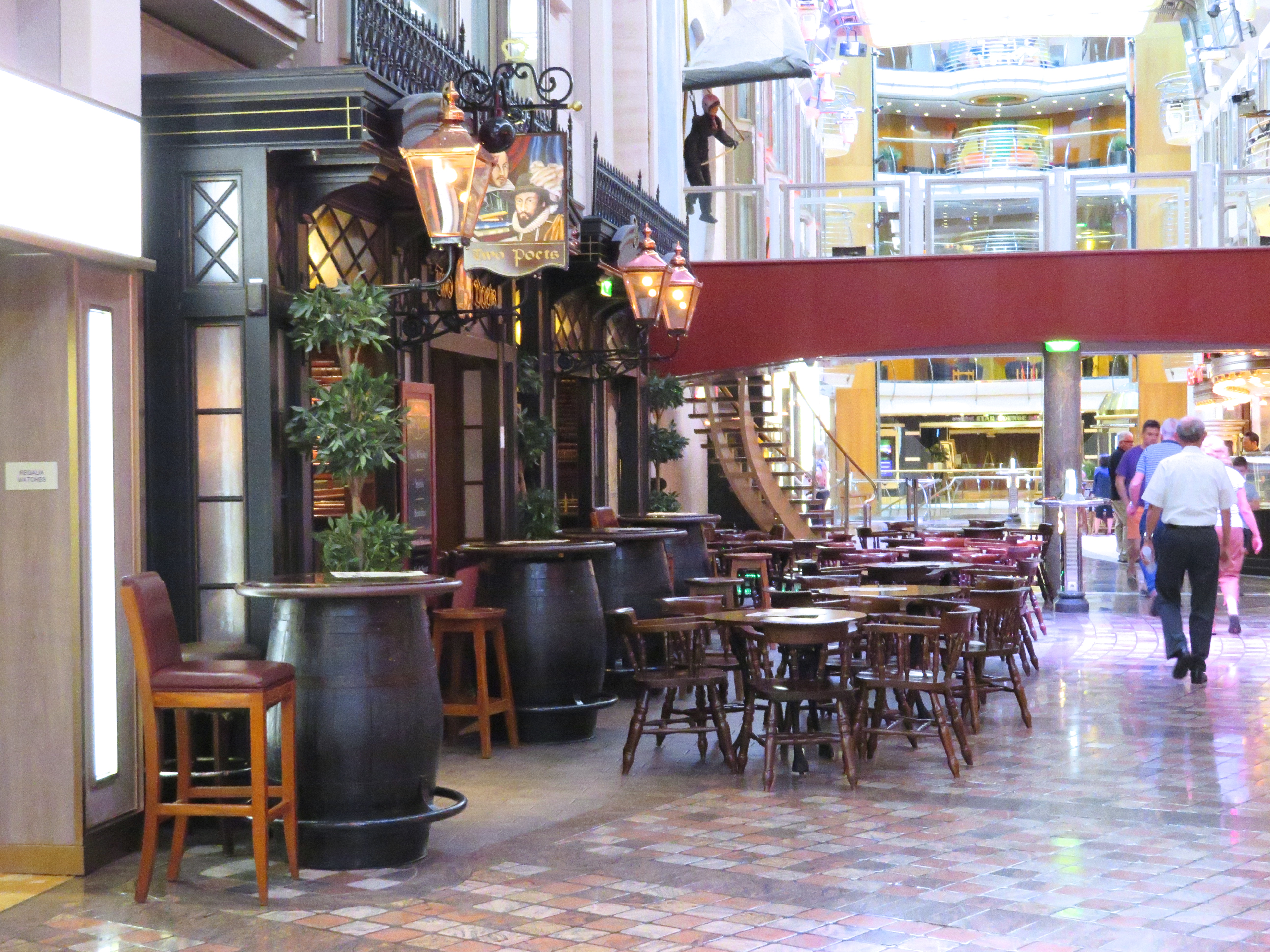 Enjoy a relaxing drink at one of the many bars onboard where there is also sometimes a singer or band playing. Bars include an English pub known as Two Poets, R Bar, Boleros or Sky Bar.
