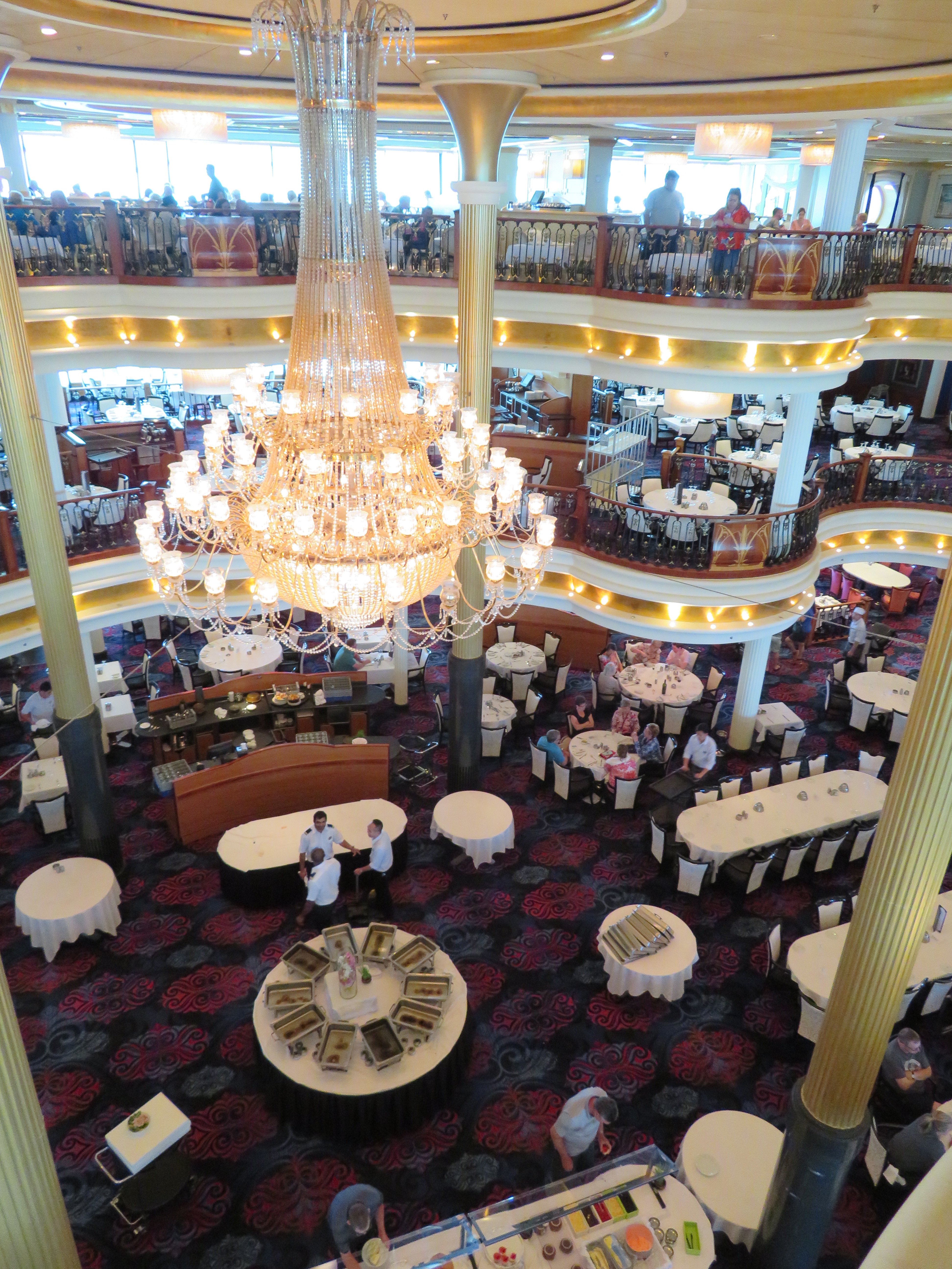 Main Dining Room: this is complimentary and will feature a different menu each nigh. This restaurant is set over three levels where you will more than likely sit at the same table for each visit.