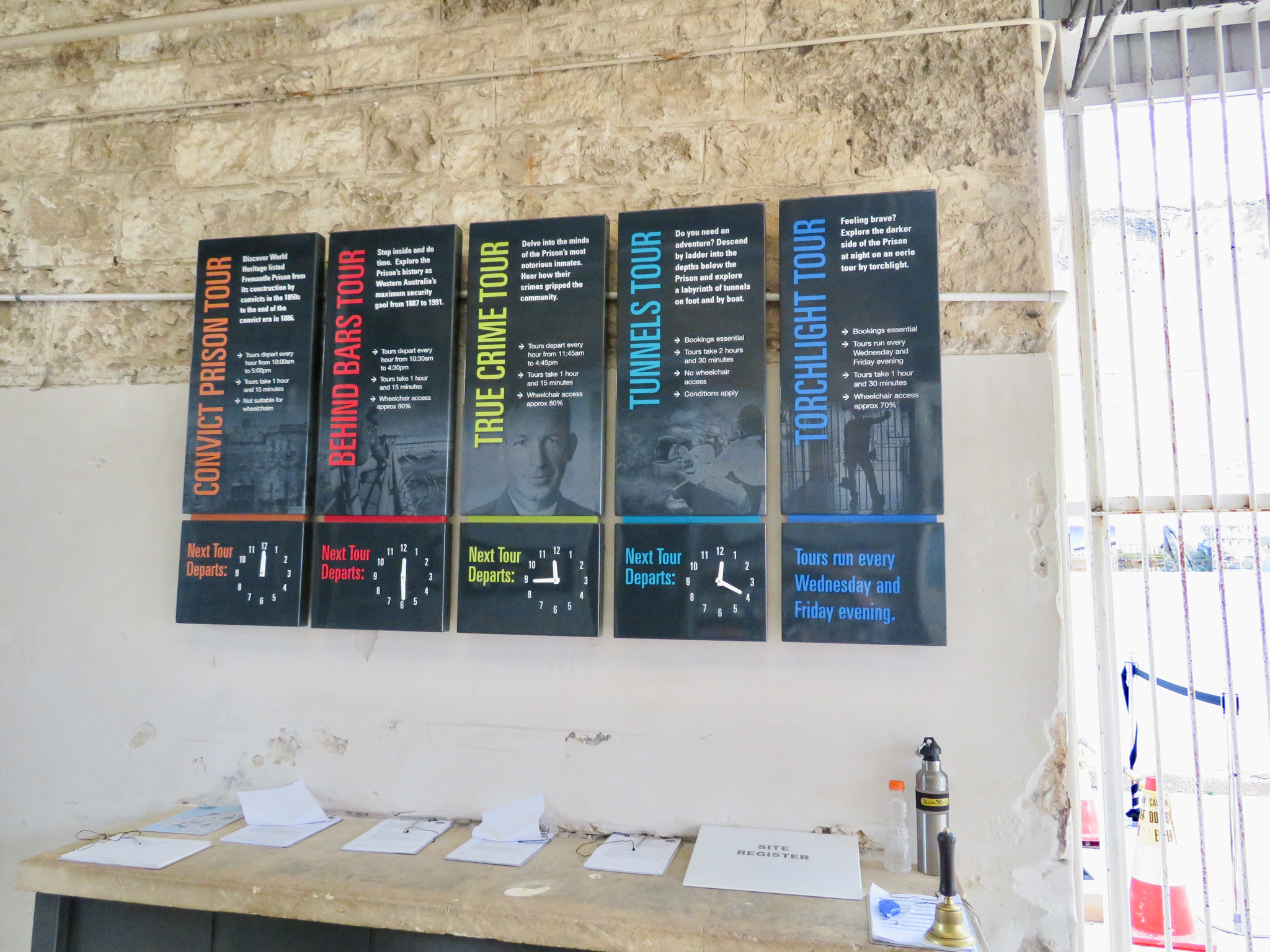 Tunnels Tour put on a hard hat and overalls before descending below the prison and explore a labyrinth of tunnels that were built by prisoners and you will also discover original blast holes, tour last 2 hours 30mins.
